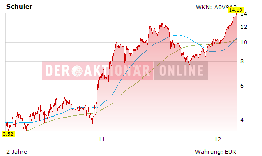 Bleibt der Markt positiv, wäre es durchaus möglich, dass die Aktie von Schuler auch noch über die Marke von 14 Euro ansteigt. Danach sollten Anleger dann aber einen engen Stoppkurs setzen oder einen Teil der Gewinne mitnehmen.