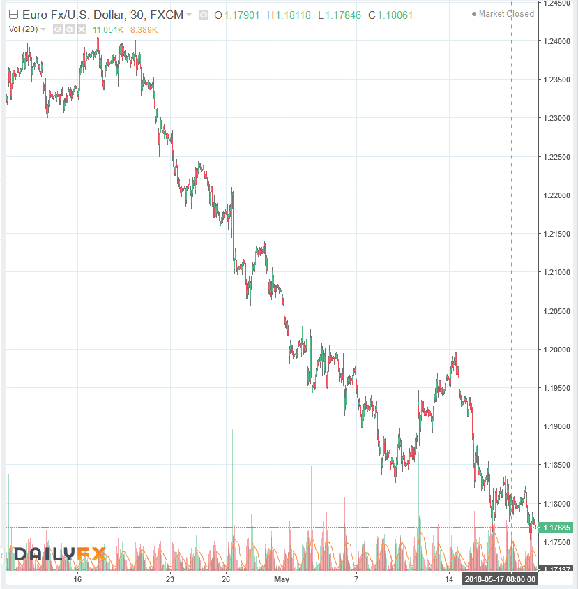 Zwischen GB und Italien gibt es einen - entscheidenden - Unterschied: Die Briten hatten auch in ihrer EU-Zeit stets das Pfund Sterling als Landeswährung beibehalten. Zumindest währungstechnisch war der Brexit somit kein Exit. Ganz anders sieht es bei einem "Italexit" aus, dessen Wahrscheinlichkeit in den letzten Wochen sprunghaft auf aktuell 19,3 % gestiegen ist (Chart unten). Denn Italien ist nicht nur ein Kernland der Eurozone, sondern hat auch den Euro als Währung eingeführt. Ein Euro-Austritt Italiens wären ein Fanal, das faktisch den "Anfang vom Ende" des Euro markierte.