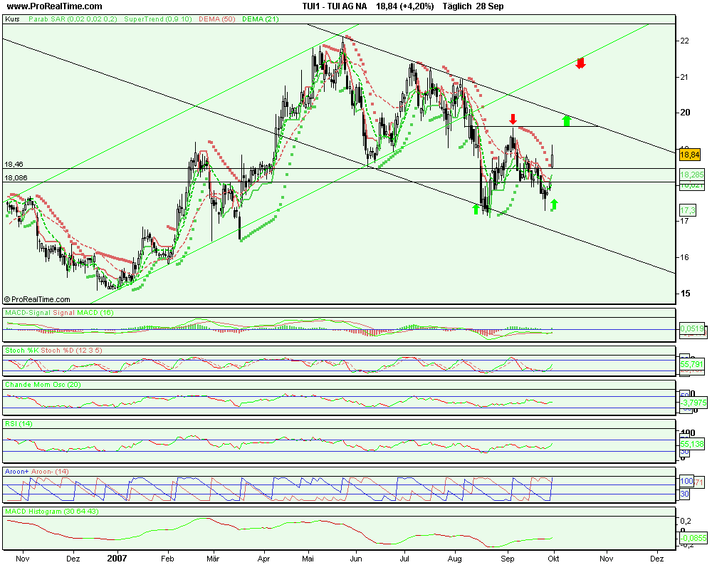 Formation ausgebrochen. Bei 20,-EURO verläuft allerdings der Abwärtstrend, der