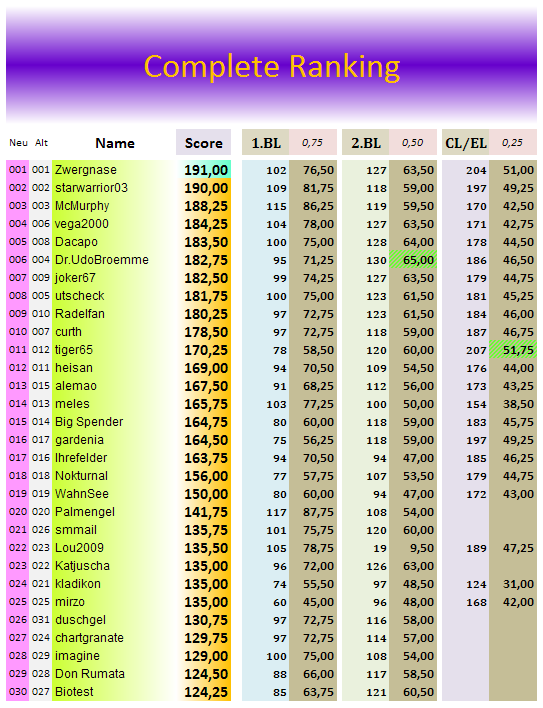 Talkthread zur CL/EL Tippergruppe...