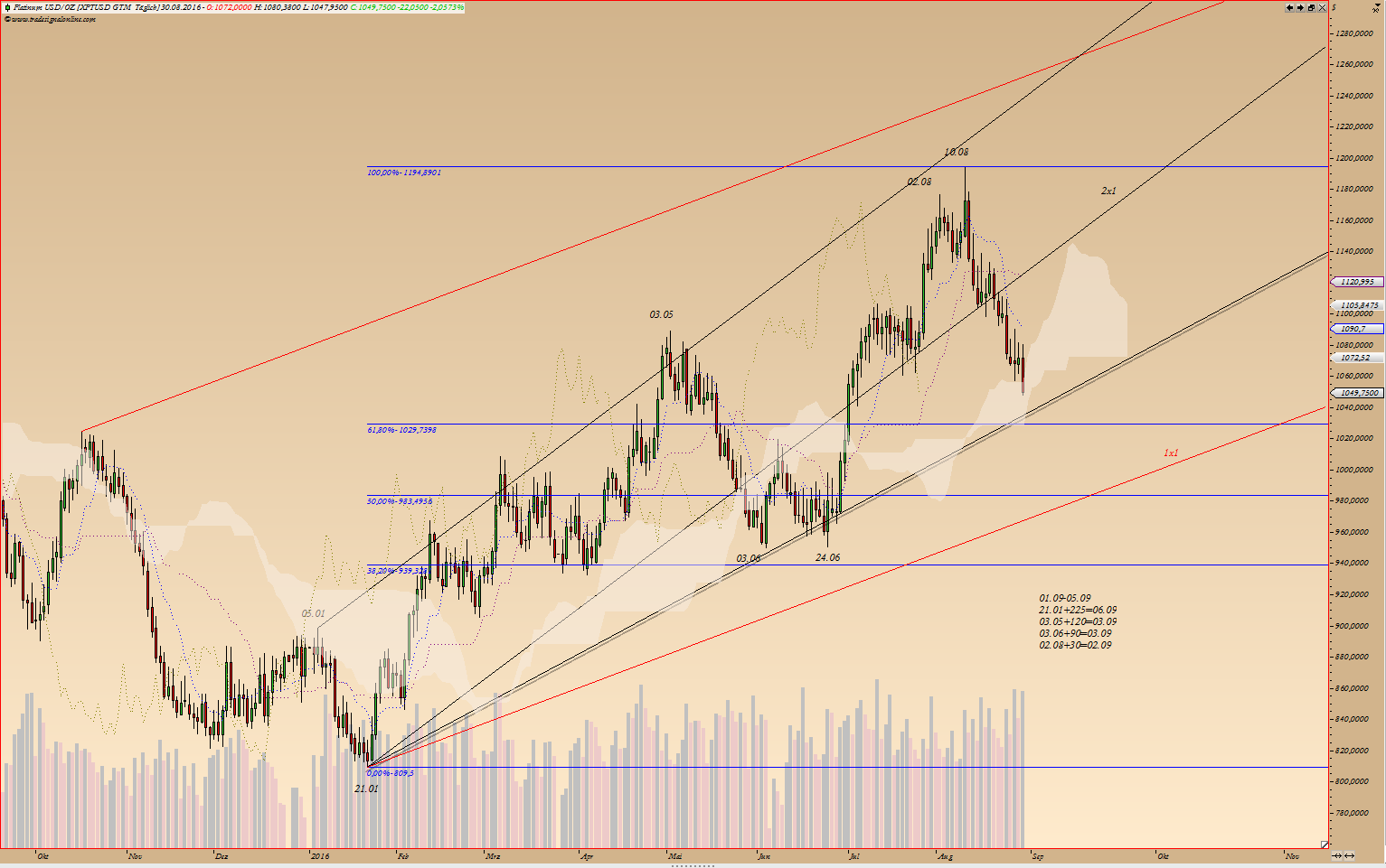 Grundlegendes: ich persönlich finde, dass wir beide unterschiedliche Strategien verfolgen. Koregiere mich wenn ich falsch liege. Du hast eine Vorstellung von einem Wert, schäzt die Warscheinlichkeit und spekulierst auf diese. Ich gehe anderen Weg. Ich habe meine Vorstellungen, wie ein Wert entwickeln könnte, schätze die Warscheinlichkeit (Plan A, Plan B usw.) und warte auf Bestätigungen dieser Warscheinlichkeit. Erst dann agiere ich nach bestimmten Regeln. Unser Beispiel: Weizen. Ich gehe davon aus, dass Weizen bis zu bestimmten Marken weiter runter geht und weil Zyklus sein Tief im September macht und Weizen tatsächlich dem Verlauf, bis jetzt folgt, erhöhe ich die Warscheinlichkeit auf, sagen wir 60%. Wobei "Behavioral Finance" würde in diesem Fall von 50/50 sprechen :-) Habe ich "Glück" :-) und Weizenpreis tatsächlich bis zu diesen Marken sinkt und dort versucht Boden zu bilden, werde ich warten bis meine Handelsregeln "sagen" - jetzt aber Long. Ich stemme mich nicht gegen den Markt, den Markt hat immer Recht und entweder lag ich mit meinen Einschätzungen richtig oder ich lag falsch. Übrigens, dieses "Falsch" zu erkennen und Fehler zu koregieren ist am schwersten - liegt aber an unserer Psyche :-)