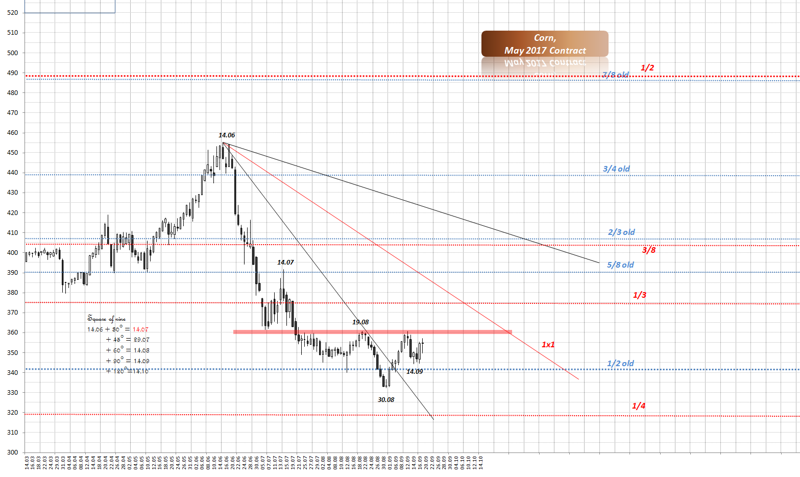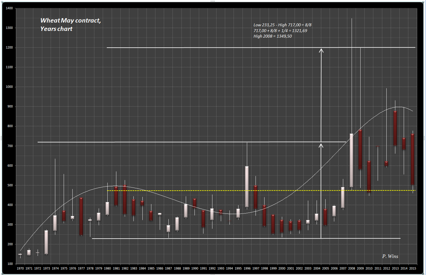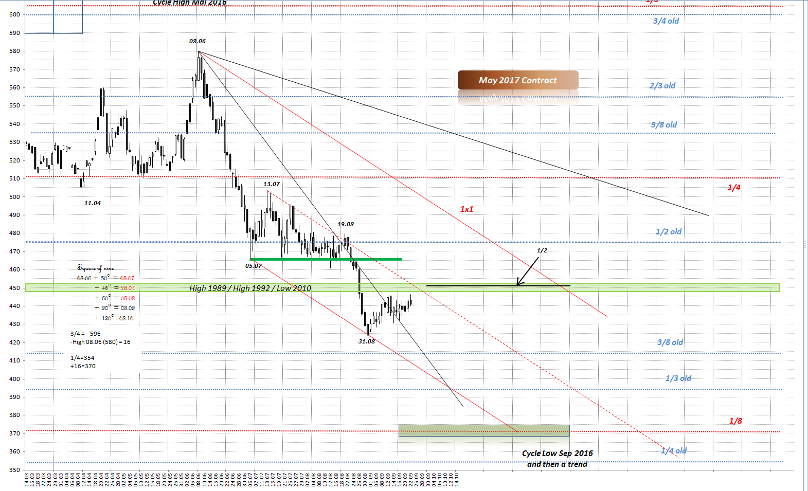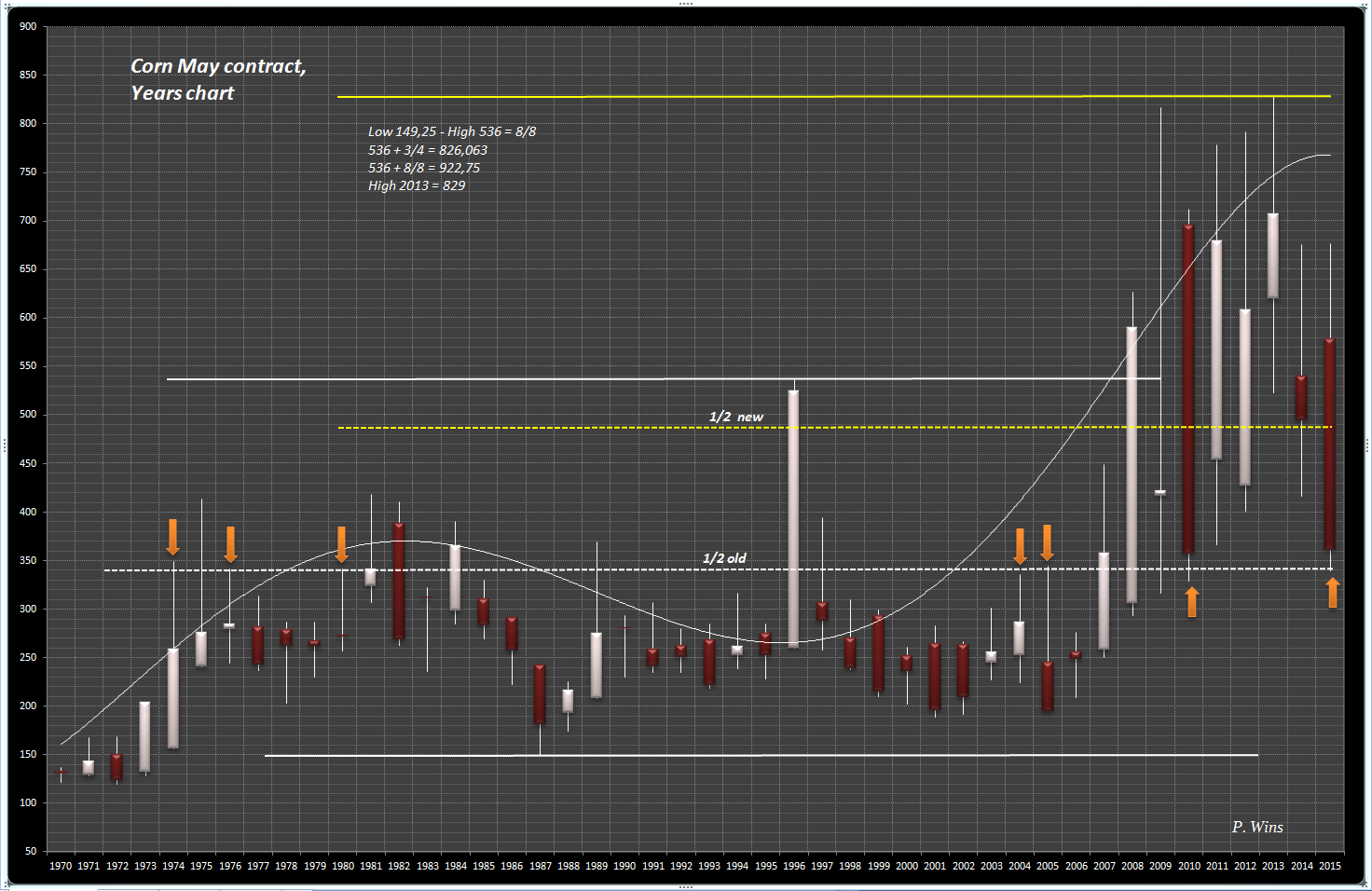 an die Fundamentalisten :-) Wie sieht es aus mit Ernte 2016 aus? Ich meine, Nachfrage nach Mais müsste höher sein als bei Weizen, schon aus dem Grund, dass Mais mehr für erneuerbaren Energien genutzt wird. Dazu kommt charttechnische Analyse. Während Mais 2013 neuen Hoch gemacht hat, bildete Weizen tieferen Hoch 2013 als im Jahr 2008. Geometrische Betrachtung: betrachtet man Quadrat bei Weizen zw. 1987 und 1996, so fällt auf, dass dieser Quadrat bis 2008 mehr als verdoppt wurde. Bei Mais jedoch nicht.... Seit letzten Hochs neigte sich Weizen mehr als Mais und daher befindet sich Mais in der stärkeren Position als Weizen... Meine Vermutung geht dahin, dass Mais in der Zukunft besser entwickeln könnte als weizen. ----------- "Hoffnung, Angst und Gier lassen sich nicht mit einer Erfolgreichen Trading-Strategie vereinbaren" W.D. Gann |
