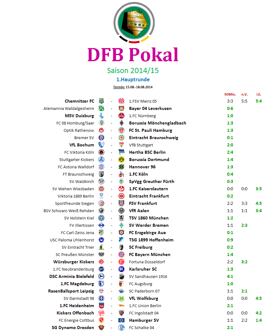 19.08.14 07:08 #97 alle Endergebnisse DFB Pokal Runde 1