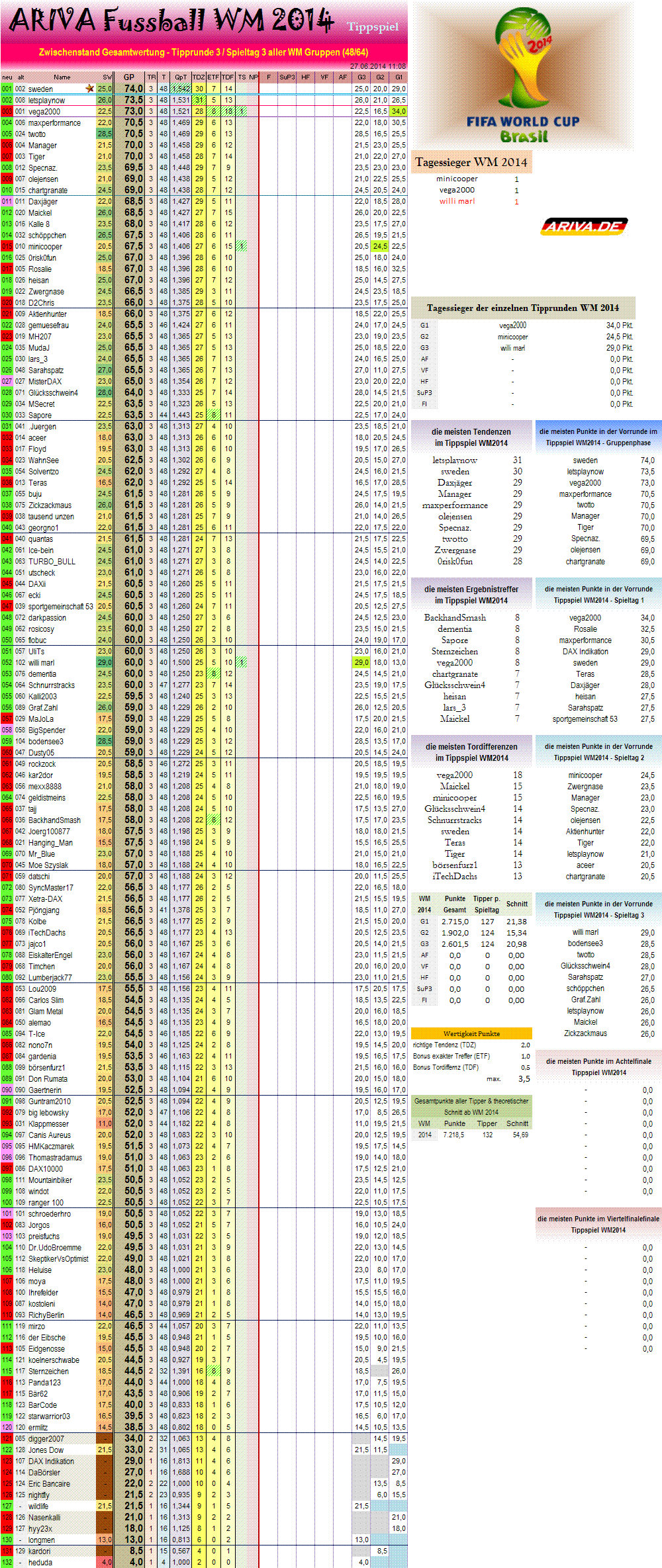 Tippspiel WM2014, Achtelfinale