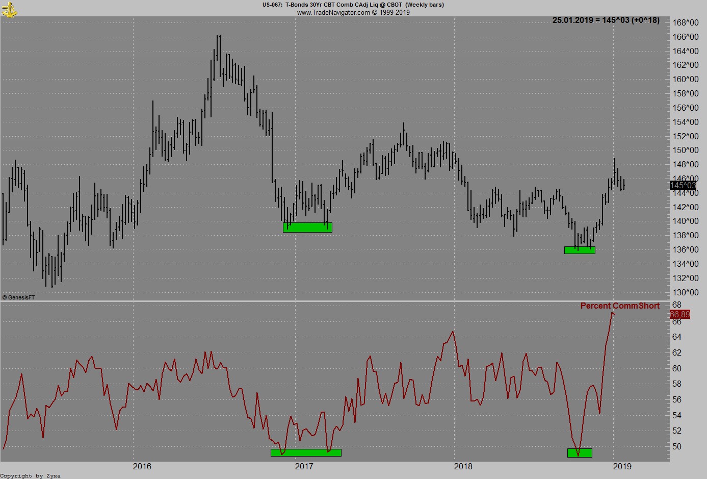 Ich betrachte gerne den %Anteil an Shorts von den Commercials am gesamten open Interest....was Bonds betrifft.