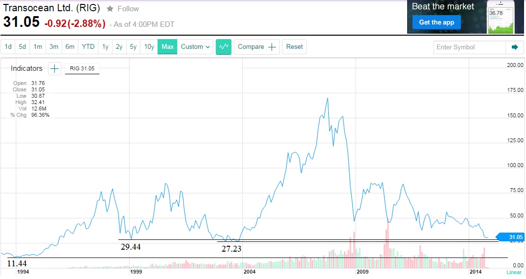@Quintus: Natürlich liegt es in diesem Forum nahe das Transocean empfohlen wird, dennoch denke ich, dass Ihr eueren Favoriten Transocean auch kritisch hinterfragt und vergleicht mit den Wettbewerbern. Aktuell fallen ja nahezu alle Aktien der Firmen in diesem Segment sehr stark (Transocean, Seadrill, Ensco....). Transocean jedoch ist besonders weit unten, das hat doch sicherlich seine Gründe?!