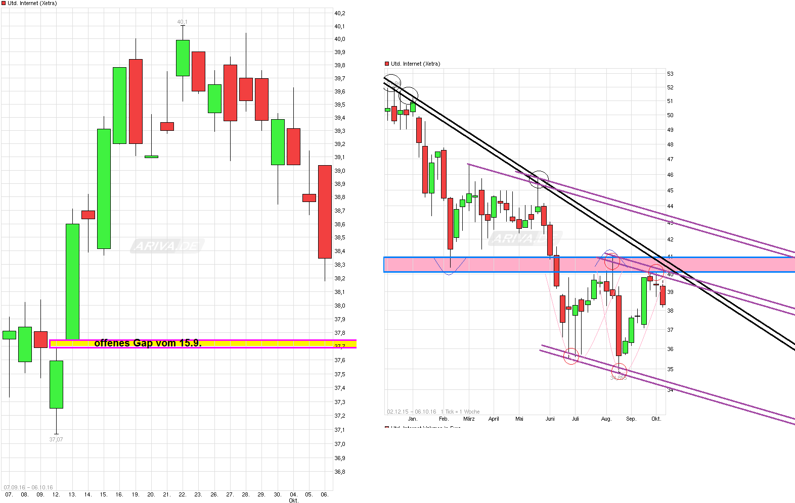 1. Der Kurs steigt auch wegen des ARP, das aber bald abgeschlossen sein sollte. Mit etwas Glück reicht der Schub um über die 41 zu kommen.