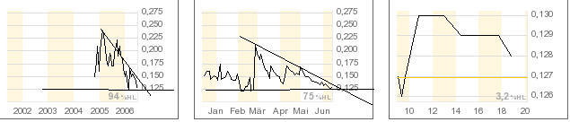 wer Ende April aus seinen Solarwerten raus gegegangen ist hatte den idealen Zeitpunkt erwischt. (siehe 27.4). Allerdings waren die Alternativen wie Solco oder Antec nicht sehr performant, blieben aber stabil. Bei dem nächten upmove von Solarwerten werden diese wohl stärker als die übrigen (Solar-) Titel profitieren. Bei Ersol könnten die Unterstüzungen bei 40€ nochmal angesteuert werden. Der Abfall ist einfach zu starkt und ins fallende Messer möchte im Moment keiner greifen. Bis der Abwärtstrend sich also abschwächt werden wohl alle Unterstützungen getestet. Bei Q-cells bin ich mal gespannt ob die alte Unterstüzung bei 49€ getestet wird, da die Aktie um die 57€ pendelt und ein doppelten Boden ausbildet.