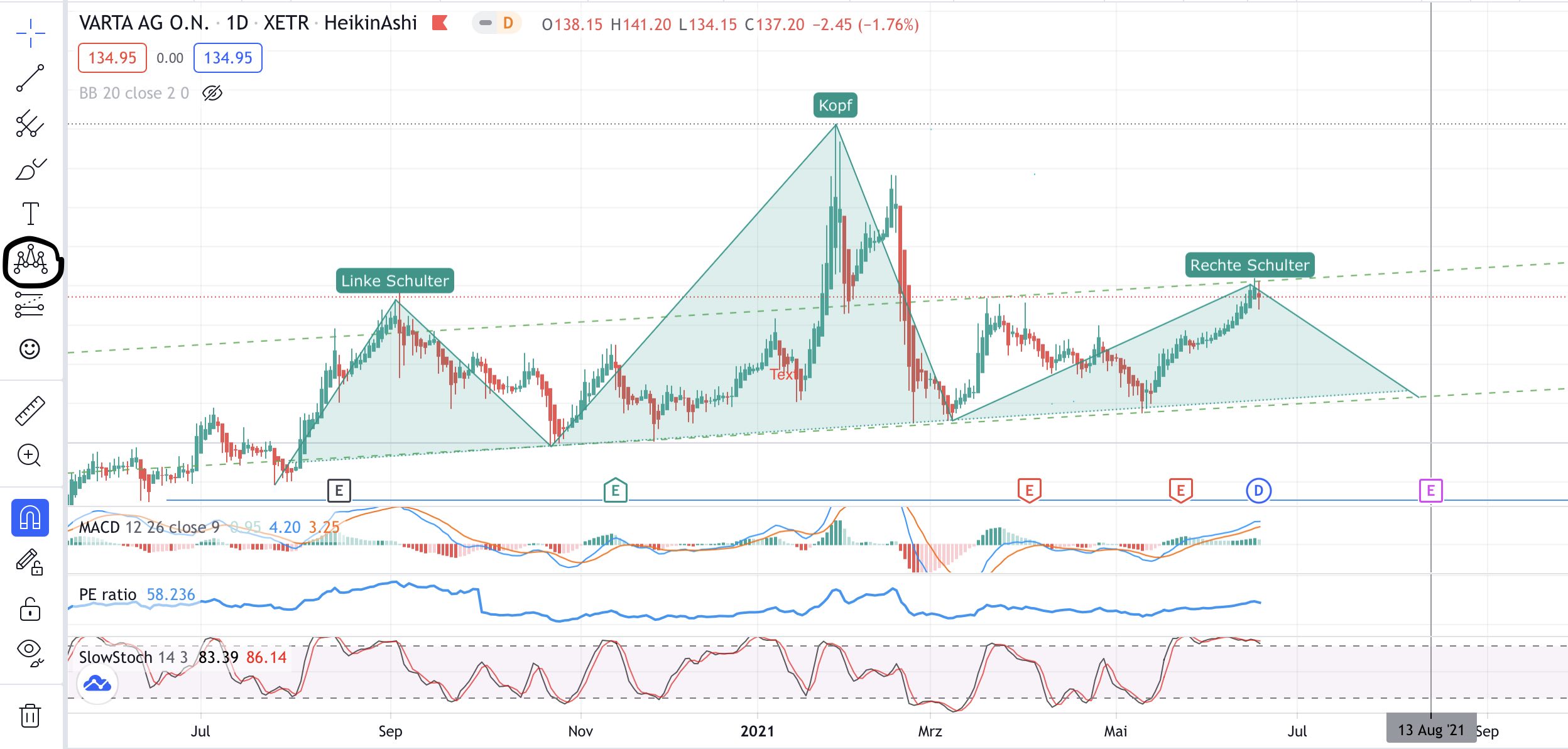 Im Tradingview habe ich zB. auch das SKS Tool heute ausprobiert, aber es passt nur sehr bedingt auf dem Varta Chart.