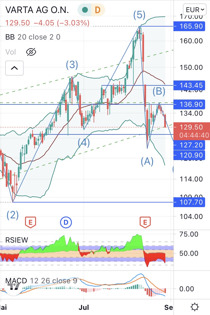 Ggf. bleibe ich einfach drin, der gemittelte EK meiner laufenden Positionen liegt bei 96,62€. Eigentlich kann man damit noch sauber traden, denn es wird nochmal runtergehen, aber die Aufmerksamkeit, die hier gebunden wird, fehlt an anderen Stellen, wo es ggf. mehr Ertrag gibt. Es sind zu viele drin, die das Gefühl haben etwas zu verpassen. Typisch Varta.