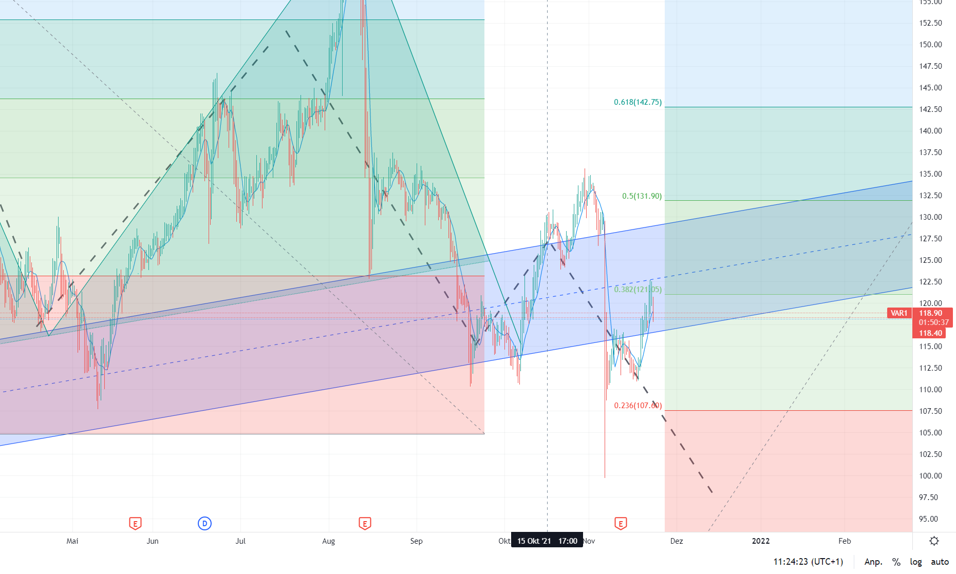 (auch wenn ich noch nie) eine Elliotwelle (zum Handeln nutzen konnte, so) würde (die) in der Therorie am 25.11. an der Kanalkante abprallen und dann exakt auf Mitte zulaufen.
