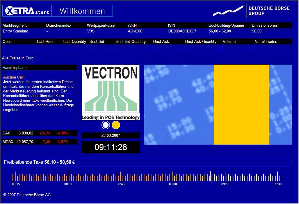 Vectron Systems: Bookbuilding-Spanne auf 56 bis 62 Euro je Aktie festgelegt