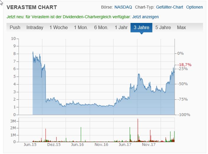 Pleite oder TurnAround bei Verastem war die Frage bei der Eröffnung dieses Threads. Ich denke es ist erkennbar, dass wir hier einen erfolgreichen TurnAround beobachten. Deshalb möchte ich mich für die Spekulationsidee hier bedanken! Andererseits gibt es beim Kauf einer Aktie ja auch eine Erwartungshaltung, bzw. Kursziele.  Wo würdet Ihr verkaufen? Oder haltet Ihr auch das Niveau im Bereich  von 10 US-$ für erreichbar? Ich bleibe zumindest vorerst dabei, Gewinne soll man ja laufen lassen . . .
