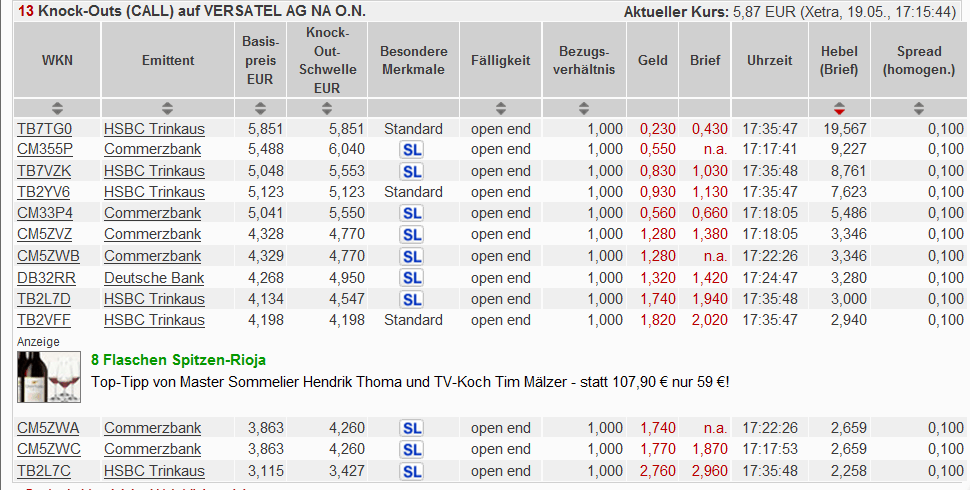 Bald wir Versatel zu Tiefkurse vom Börse geholt.
