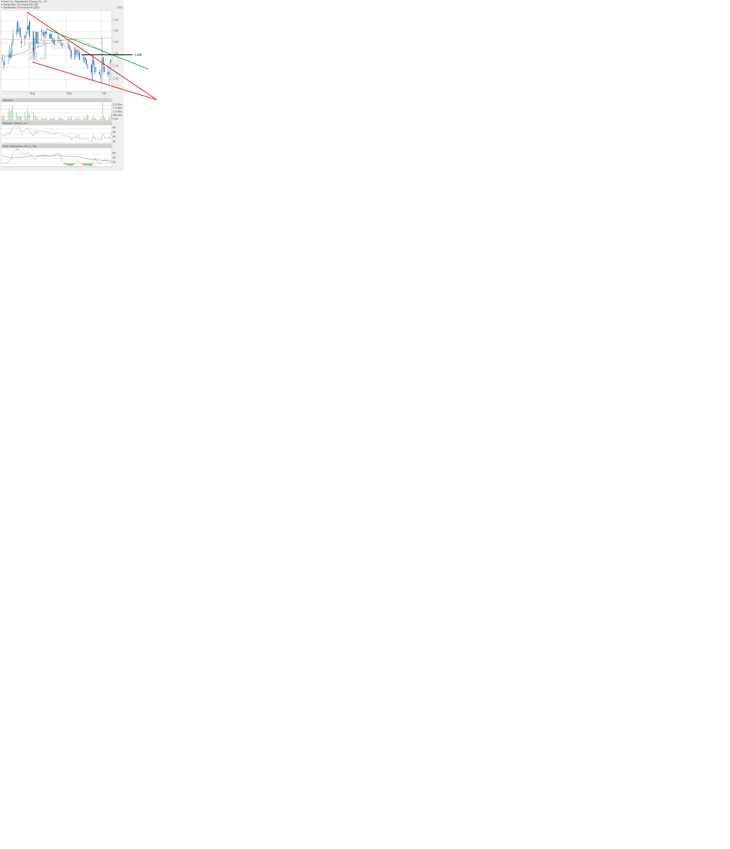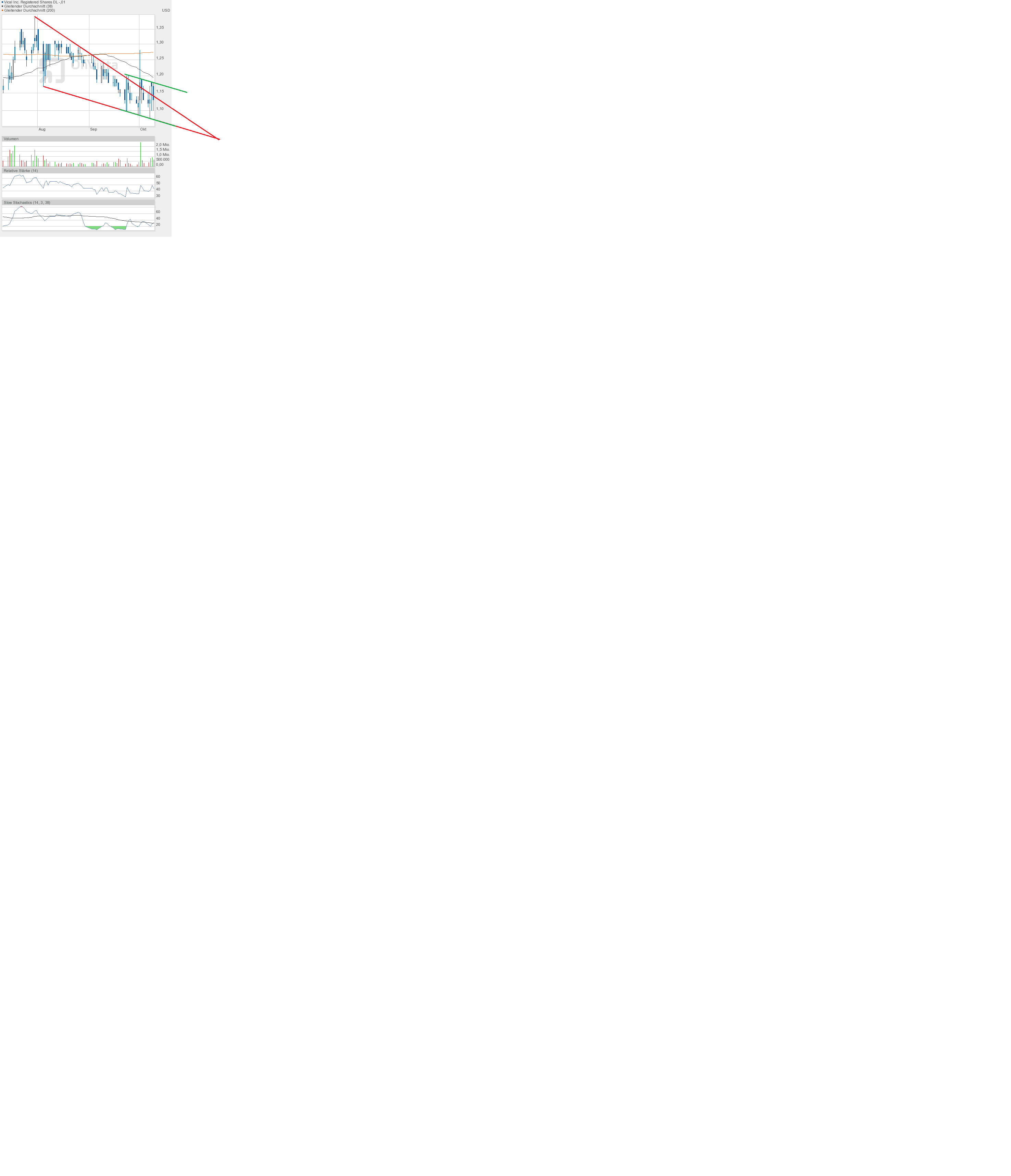Mein lieber Schwan, da ging es an den Märkten aber zum Schluss immer deutlicher in den Keller. Der DowJones verliert über 1,5% und droht aus dem langen Aufwärtstrendkanal zu fallen. Das wäre alles, nur kein Kaufsignal. Vical konnte sich heute aber von den Märkten abkoppeln und mit 1,13$ sogar leicht zulegen. Der Handelstag war aber alles andere als langweilig. Auf der Unterseite haben wir mit 1,08$ ein durchaus wichtiges Signal erhalten, was uns den roten Keil beschert hat. Den hätte man schon gestern einzeichnen können. Allerdings fehlte mir noch die Bestätigung. Und die haben wir ja jetzt. Und 1,08$ spielt diese Woche auch im Wochenchart eine große Rolle, denn hier verläuft die grüne Abwärtstrendlinie. Schaut doch einfach mal im Chartbild im Beitrag #465 nach. Am besten wäre also, wenn es diese Woche überhaupt nicht unter 1,08$ gehen würde. Auch nicht Intraday. Zum heutigen Handel zurück kommend haben wir mit 1,17$ im Hoch ein weiteres Fehlsignal gesehen. Damit dient die bekannte rote Abwärtstrendlinie als Keiloberbegrenzung. Damit konnten wir uns heute dem Trouble entziehen. Aber wehe der DowJones verlässt morgen den Aufwärtstrendkanal. |