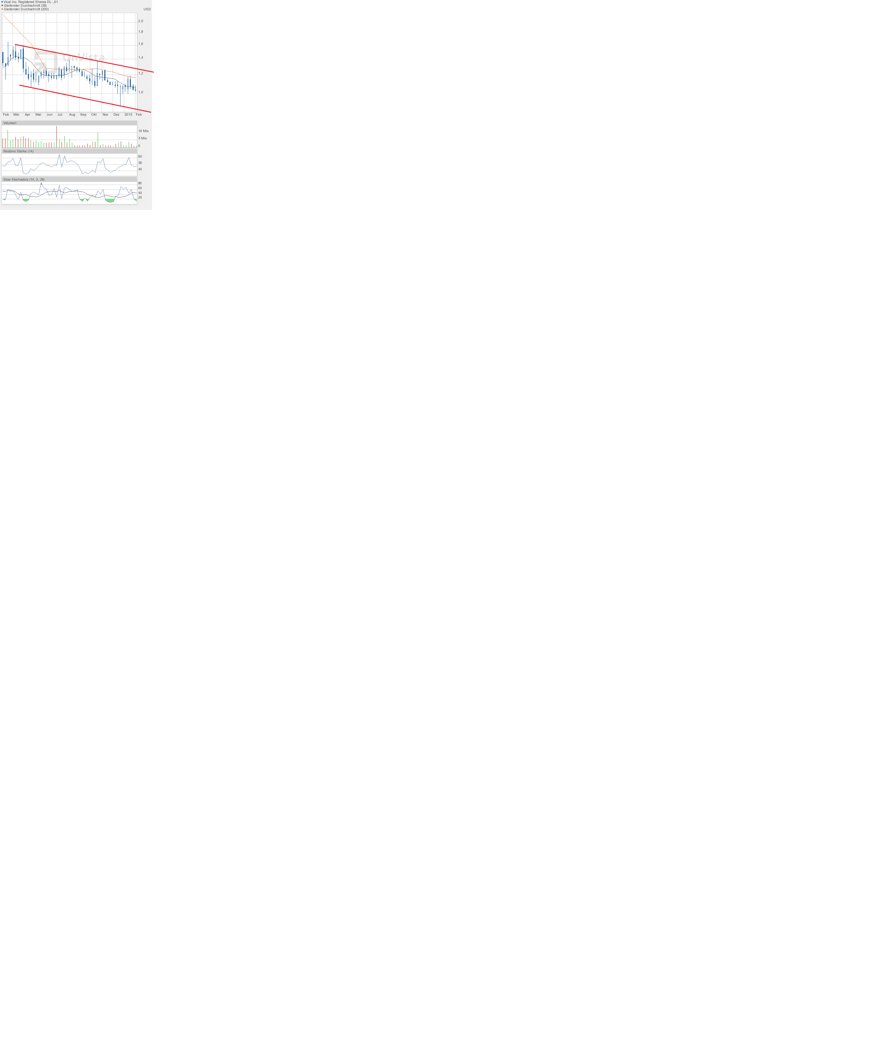 Verpasst hat mit Vical aber keiner was. Insofern präsentiert sich der Chart weiterhin sehr unspektakulär. Möglicherweise hat nun die orangene Abwärtstrendlinie eine Bedeutung. Aber das wird die nahe Zukunft zeigen.