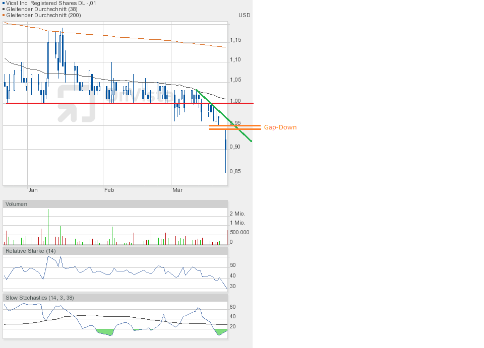 Dazu müsste aber schnellstens das Gap-Down geschlossen werden, was mit 0,95$ der Fall wäre. Darüber wird es positiver.