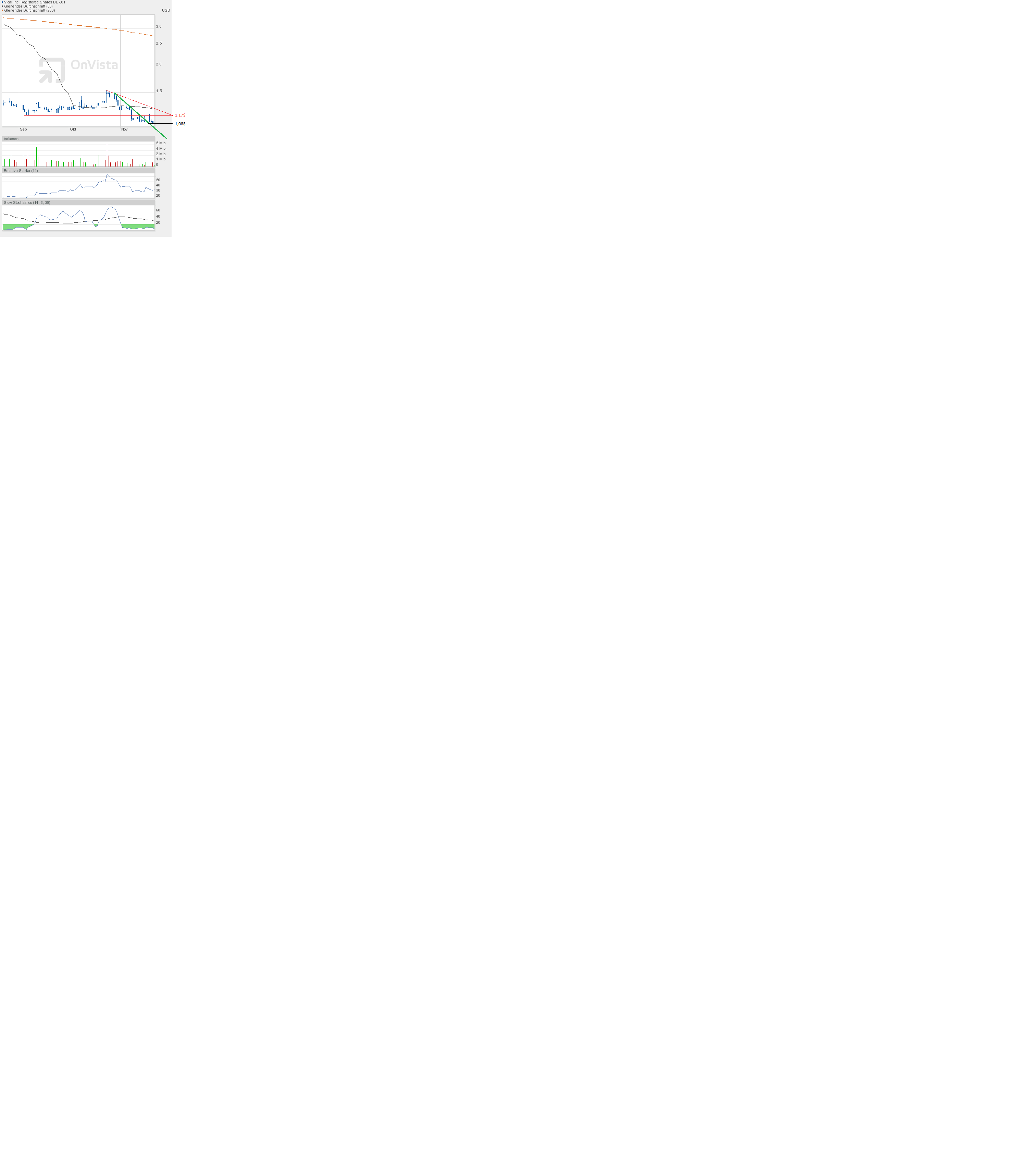Da hat man wieder schön gesehen, wenn ein Kaufsignal da ist, dann kann man sich auch gegen den Markt bewegen. Die US-Indizes heute klar im Minus. Vical unverändert bei 1,20$.
