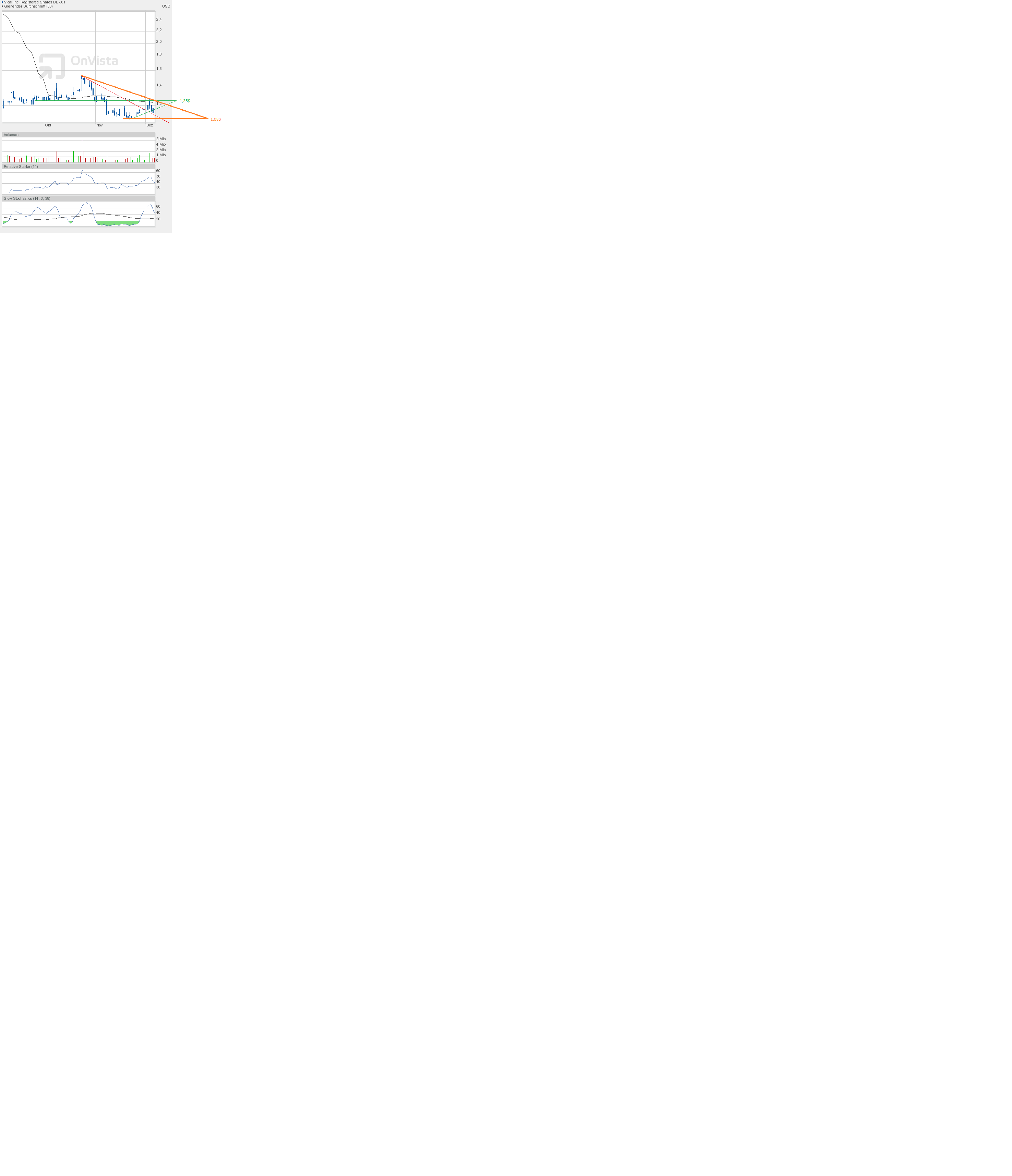 Es gelingt aktuell nicht einmal der Sprung über 1,17$. Der abfallenden roten Linie kommt man auch nicht näher. Der Sprung darüber ließe einen ordentlichen Kursanstieg erwarten. Der Ausbruch sollte doch im Dezember irgendwie gelingen.