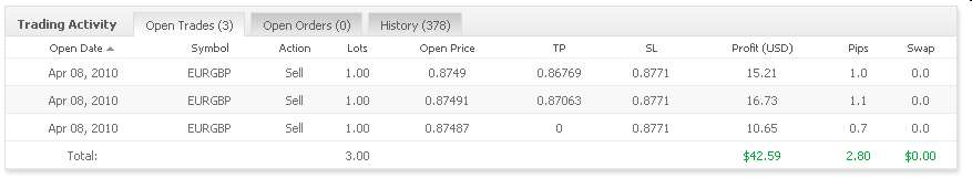 Die Rahmenbedingungen: - Ich trade auf Alpari UK - Ich trade einen Account von 100.000 USD - Ich trade den 1h-Chart - Ich trade nicht jeden, aber fast jeden Tag - der Spread liegt in der Regel zw. 2 -4 Pips - Ich trade die Währungen USDJPY, AUDUSD, EURGBP, EURUSD, USDCAD, GBPUSD, USDCHF - Ich trade 3x1 Lot ausser GBPUSD. Hier trade ich 3x0,5 Lots - Der Entry erfolgt immer gleichzeitig mit 3x1Lot, der Exit erfolgt in der Regel stufenweise - Alle Trades haben einen Stoploss, den ich ggf. stündlich nachziehe - Ich trade in der Regel zwischen 7.30 und 20.00 MEZ - Bis auf wenige Ausnahmen werden alle Trades um 20.00 geschlossen. - Kein Trade ist über das Wochenende offen - Ich trade ausschließlich nach eindeutigen technischen Entry- und Exitregeln