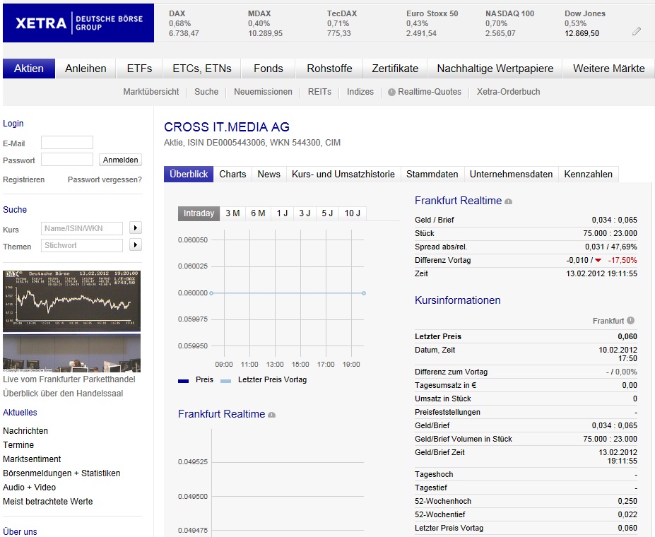 13.02.12 19:23 #114 Aktueller Auszug Börse Frankfurt: