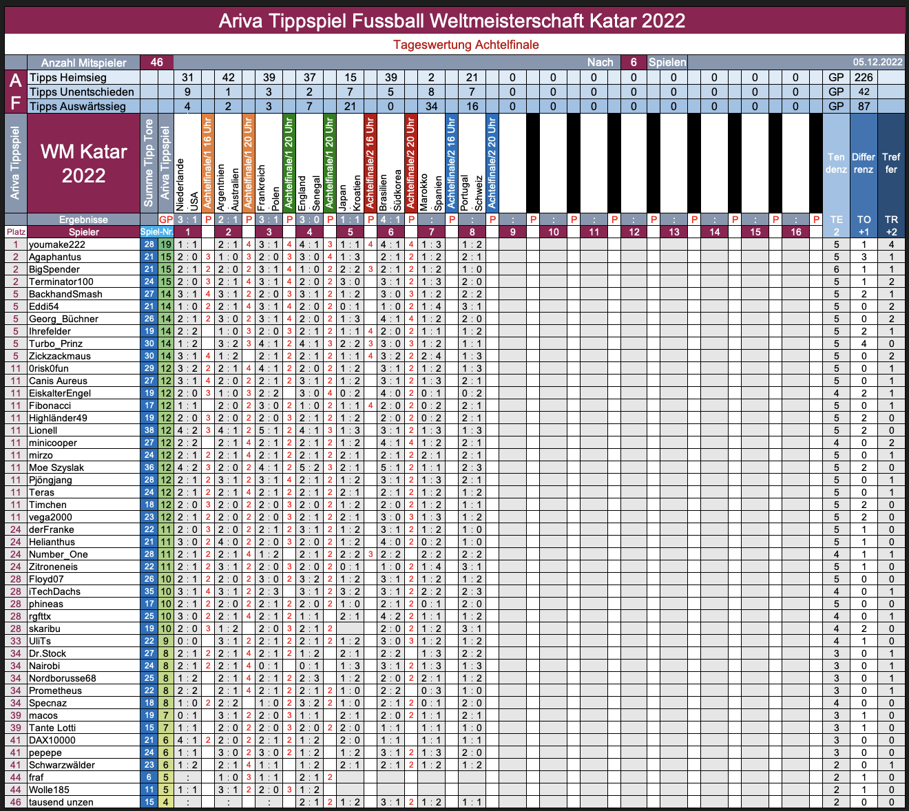WM 2022, TippR 5 Katar, Achtelfinale/2: