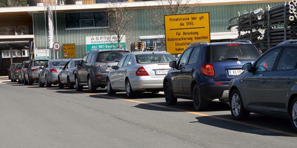 Diese Fotos sind unglaublich: Vor der Landestankstelle in Klagenfurt stauten sich gestern um 11 Uhr mehr als 20 Autos. Wartezeit in der 150 Meter langen Schlange: „Mehr als eine Stunde“, beklagte sich einer der Fahrer. Dafür bekam er den fast billigsten Diesel des Landes: 1,395 Euro/Liter.