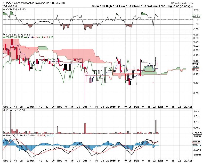 Der letzte Candlestick ist ein: Long-Legged Doji (juji). dieser zeigt deutlich die völlige Unentschiedenheit des Marktes an. Da man im thread von bullischer Stimmung ausgeht habe ich bewusst die buy Indikatoren CCI und MACD gewählt. Der CCI hält sich kurz unter der Signalline in einer Seitwärtsbewegung auf und gibt kein direkt verwertbares Signal ab. Trotzdem kann man in der 33 Periodeneinstellung und dem bisherigen Verlauf ablesen, daß die weitere Richtung wohl nicht nach unten abfallen wird, sondern eher einer Konsolidierung gleicht. Unterstützt wird das vom MACD der zwar geringe Stärke zeigt aber mit dem Überschreiten der Signallinie über die Basislinie, oberhalb der 0 Linie, ein schwaches positives Signal abgibt, das seit Ende Januar anhält. Von einer kurzen Nadel die bis auf 0,10USD abfiel und dem dabei entstandenen knick um den 21.02 unterbrochen, was Charttechnisch aber vernachlässigbar ist, Fundamental aber nicht. Der 6 Monatschart zeigt eine deutliche Trendwende mit einem Tiefpunkt bei 0,075USD am 26.01. Die Linie des langfristigen Abwärtstrends die man vom 08.09.09 über den 08.01.10 ziehen kann, wurde am 07.02.10 gebrochen. Die 50Tage Linie die bei 0,13USD liegt hat der Kurs ebenso hinter sich gelassen. Die 200Tage Linie steht als Widerstand bei 0,18USD dem Kurs entgegen. In dem Seitwärtsverlauf von Ende Oktober 09 bis Anfang Dezember 09 kann man einen deutlichen Widerstand um die 0,16USD zum Momentanen Kurs sehen. Weshalb es wohl auch zu rückschlägen in diesem Bereich kommt. Der Ichimoku bestätigt die Signale des CCI und MACD. Der Kurs liegt über der Wolke auch der um 22Tage nach hinten versetzte Kursverlauf der grünen Linie steht über dem damaligen Kurs, wasc stärke signalisiert. Die Wolke unter dem Momentanen Kurs ist sehr dünn, was auf geringe Unterstützung hinweist. Nach dem derzeitigen Stand sollte sich das auch nicht so schnell ändern. Die gleitenden Durchschnitte, rote und blaue Linie, haben sich am 10.02 gekreuzt, innerhalb der Wolke und unterhalb des Kursverlaufes. Danach haben sie sich voneinander entfernt und wieder angenähert. Nach unten gekreuzt haben sie sich aber nicht. Man kann deshalb von einer starken Seitwärtsbewegung ausgehen die eine mittlere Tendenz nach oben hat. Damit währe die von den Candelstickformationen zum Kursverlaufsende beschriebene Marktunsicherheit nach Ichimoku, CCI und MACD eher durch einen Ausschlag nach oben widerlegt. Bestätigt wird das auch von dem ca Einmonatigem Aufwärtstrend der im Widerstandsbereich bei 0,16USD derweilen geendet hat. Diese Situation wäre Charttechnisch kurzfristig nicht aufzulösen. Da hilft nur Newsflow. Und da habe ich im thread ja auch schon etwas gelesen! Gruß |