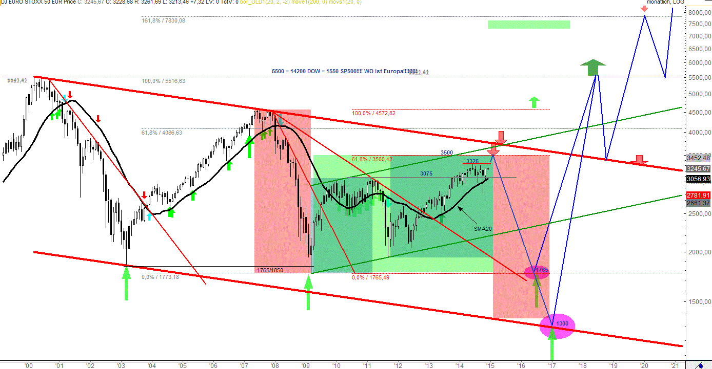 hier der neueste schund aus der regenbogenpresse von rocco gräfe. er prognostiziert dass der eurostoxx auf ein neues jahrtausendtief sinkt. das kann er alles mit seinen buntstiften aus dem chart lesen.