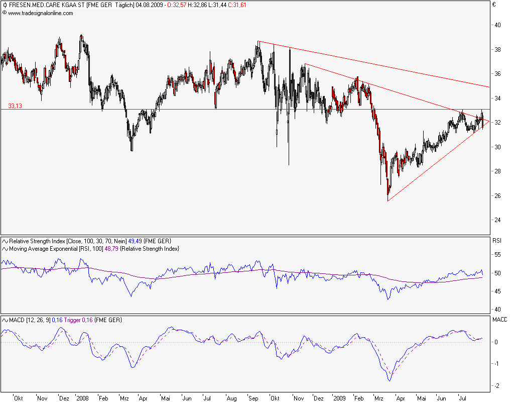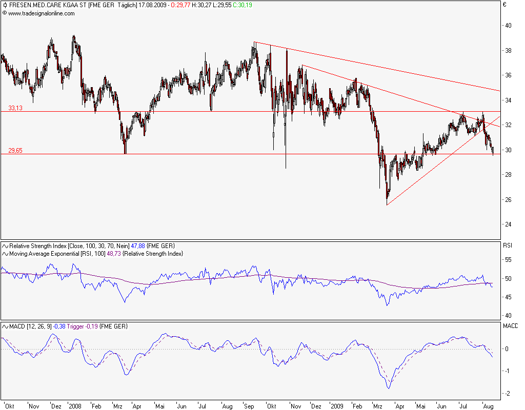 Die Zahlen und speziell den erhöhten Ausblick von FMC bewerteten Börsianer positiv. Der zum Medizinkonzern Fresenius gehörende weltgrößte Dialysespezialist hob nach einem Gewinn- und Umsatzanstieg seinen Ausblick für 2009 leicht an. Laut Händlern kam das gut am Markt an. Die "nackten Zahlen sind etwas besser als erwartet", so ein Händler. Marktteilnehmer zeigten sich auch zufrieden mit den Fresenius-Zahlen. Der Medizinkonzern profitierte in den ersten neun Monaten von Währungseffekten und der Übernahme des US-amerikanischen Generikaanbieters APP Pharmaceuticals und verdiente mehr als im Vorjahr. Börsianer nannten die Zahlen besser als erwartet. [....]