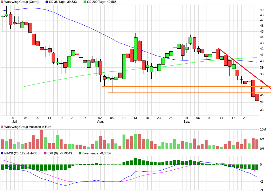 Aber unter 33€ dürfte dann auch technisch das Risiko auf 10%, im Extremfall 12-15% begrenzt sein. Daher denke ich auch dass wir da Tief im 32er Bereich sehen könnten. Aber aktuell sieht der Chart wirklich mies aus. Ich kann verstehen wenn da jetzt kaum jemand ins fallende Messer greift. Mittelfristig aber eigentlich egal.