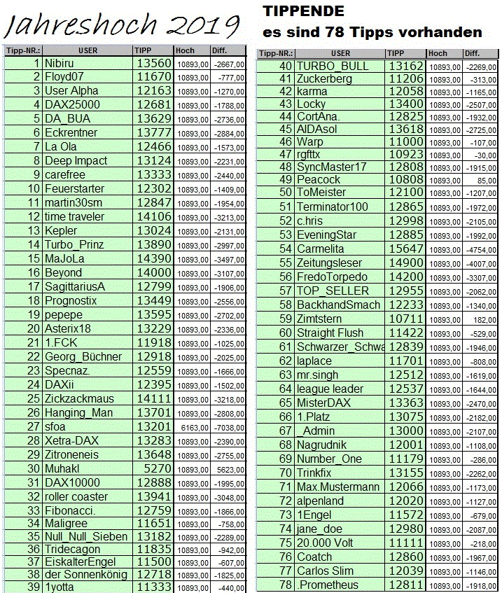 naja ihr habt ja getippt für 2019 und wir werden sehen wer der DAX Tipp König 2019 beim