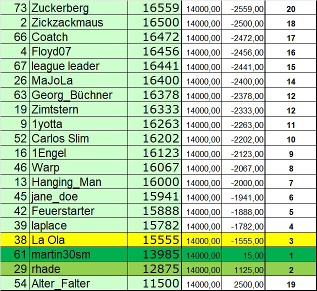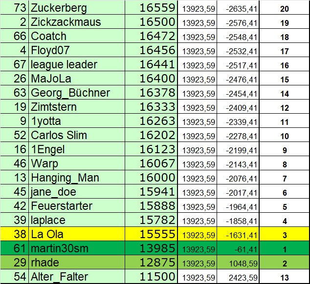 #90 Mit meinen 13985 bin ich glaube ich gut dabei .