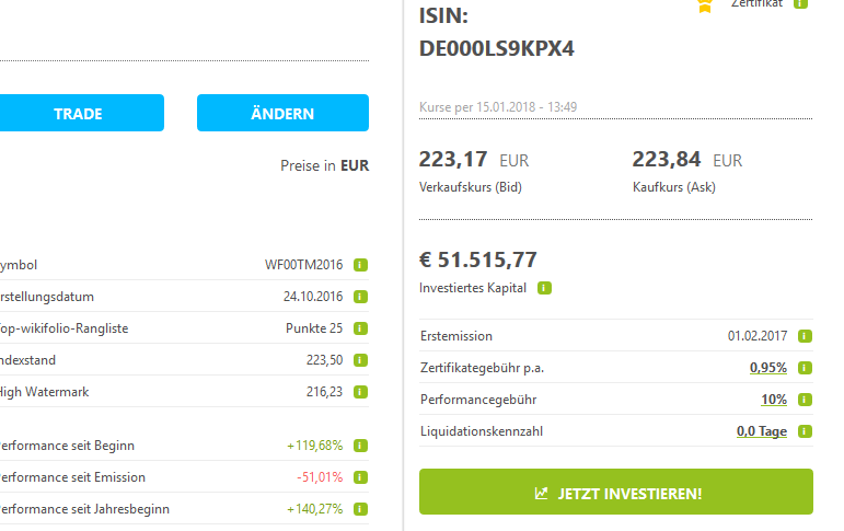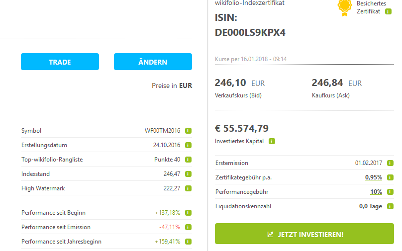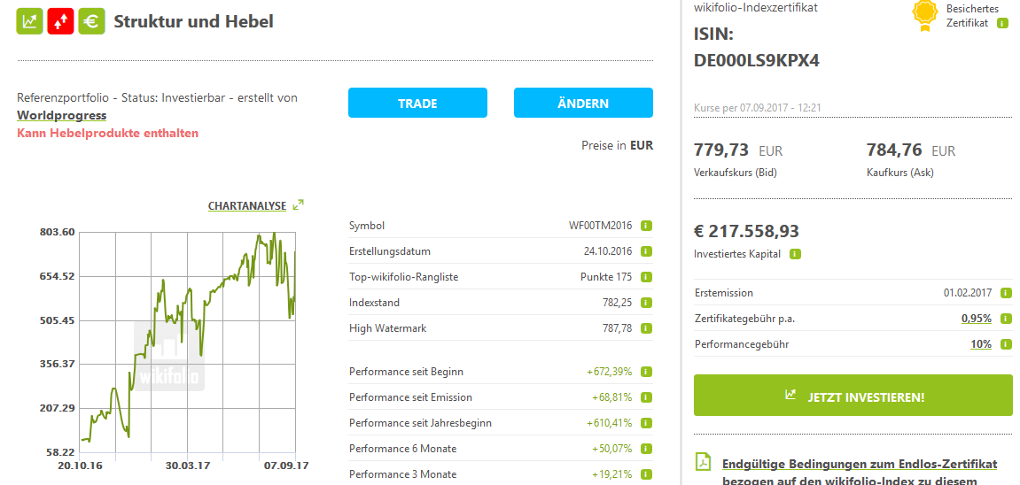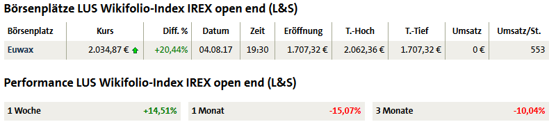 | Sehr geehrte Damen und Herren. Ich möchte mich bei allen Anlegern und Anlegerinnen bedanken, die bis zum heutigen Tag investiert geblieben sind. Ich hatte Ihnen gestern in Aussicht gestellt, daß das Wikifolio das Potential hat von 720 auf 800 zu steigen. Diese Möglichkeit ist eingetreten, das Wikifolio ist auf Alltimehigh. Es besteht die Möglichkeit, daß ich den Wikiwert auch weiterhin steigere, ich traue mir die Vierstelligkeit im Laufe der Wochen zu. Sie haben den Vorteil, daß ich hauptberuflich trade und mich ganz dem Börsengeschehen widme. Also wäre es nett, wenn Sie nicht sofort zur Gewinnmitnahme übergehen, sondern Ihren SL anpassen, vielleicht ja sogar zukaufen. Der neue SL könnte bei 730 liegen. Ihnen einen schönen Tag. |