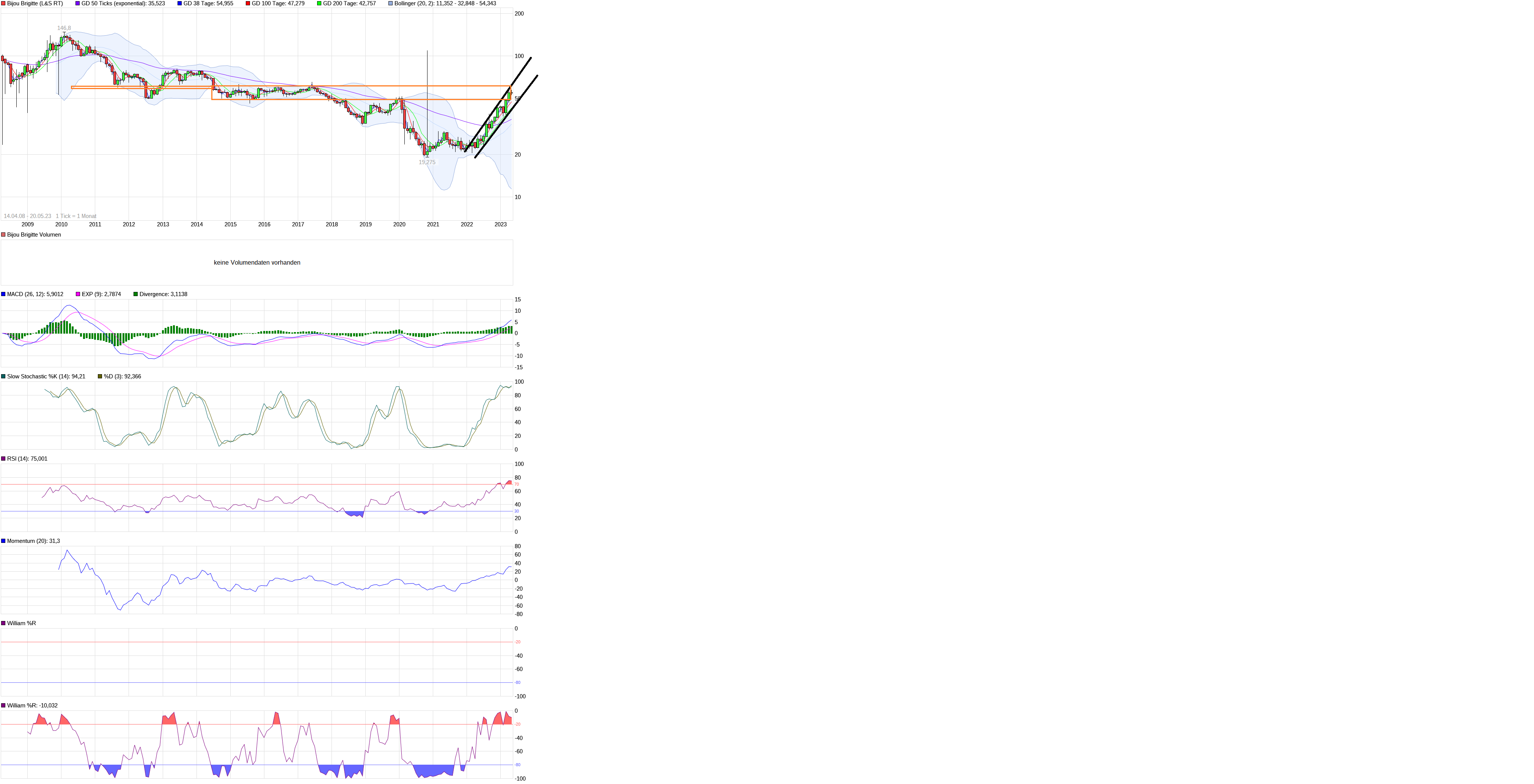 Technisch sieht es ganz danach aus, als ob wir hier die 5 Wellen erst beendet hatten (hinterher sieht man es oft einfach besser). Eine "Zickzack-Korrektur scheint das Ganze wieder bis zur vorherigen Welle 4 im aufwärtsgerichteten Trend (wäre völlig typisch und ist sehr oft so) herunterzukatapultieren bzw. zu korrigieren?! Dies wäre so in dem Bereich rund um 120 Euro. Sicher, das Unternehmen spürt auch die Rezzession, aber es ist gesund, mit einer guten Kapitaldecke ausgestattet, ja es schwimmt sogar in Geld und wird auch deshalb einen Bonus im Juli von 0,50 Cent an die Aktionäre als Sonderprämie zu den 6,50 Euro Dividende ausschütten. Der Gewinn ist etwas zurückgegangen, aber trotzdem für eine Krise immer noch ansehlich und die Aussichten sind meiner Ansicht nach sehr gut. In diesem Jahr werden in 65 sehr günstigen und guten Standorten neue Filialen eröffnet, wie z.B. Bukarest und Sofia, zwei Hauptstädte wo man eigentlich erwarten könnte, das solche Filialen gut laufen. Über 90 Prozent der Kunden bei Bijou Brigitte sind Frauen und Teanager. Oft bleibe ich bei uns in Itzehoe vor diesem Laden stehen oder gehe mit meiner Frau (als Verstärkung ) hinein und beobachte die Kundschaft, -alles weibliche Personen welche kaufen. Nur eine Angestellte-, kleine günstige Ladenflächen meist sehr zentral in Kaufpassagen. Die Idee solcher Geschäfte ist, so finde ich, genial. Du brauchst auch keine riesen Läden für die Verkaufsartikel. Also, alles in Allem, mittelfristig bleibt dieser Wert ein Geheimtipp, für mich allemale.