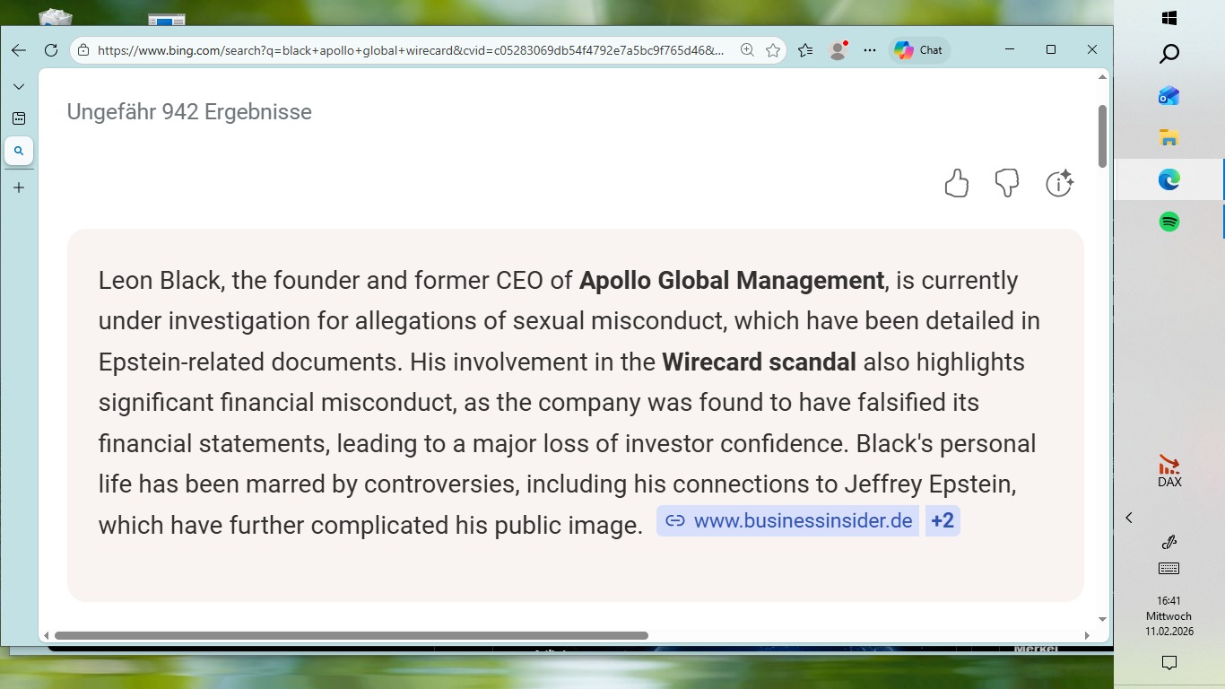 es gibt keine Verbindungen zwischen Epstein und wirecard, ich habe jedenfalls keine gefunden, aber es muss ja auch nicht nur das Epsteinnetzwerk gegeben haben. es sind noch andere Netzwerke denkbar, womöglich hatte Putin ja, auch mehrere Eisen im Feuer...ende zitat