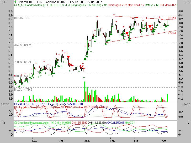 Sind 45 Mio € Umsatz und ein Überschuss von 4,0-4,5 Mio € für 2006 realistisch? Wäre ein KUV von etwa 1,75 und ein KGV von 18,8. Find ich angemessen, aber wenn Init natürlich weitere solche Großaufträge erhält, hat man sicherlich noch gutes Potenzial.