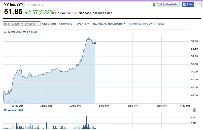 Revenue from YY's online games climbed 84% to $25.3 million. But that's down from 87% growth in Q2 and 92% in Q1.