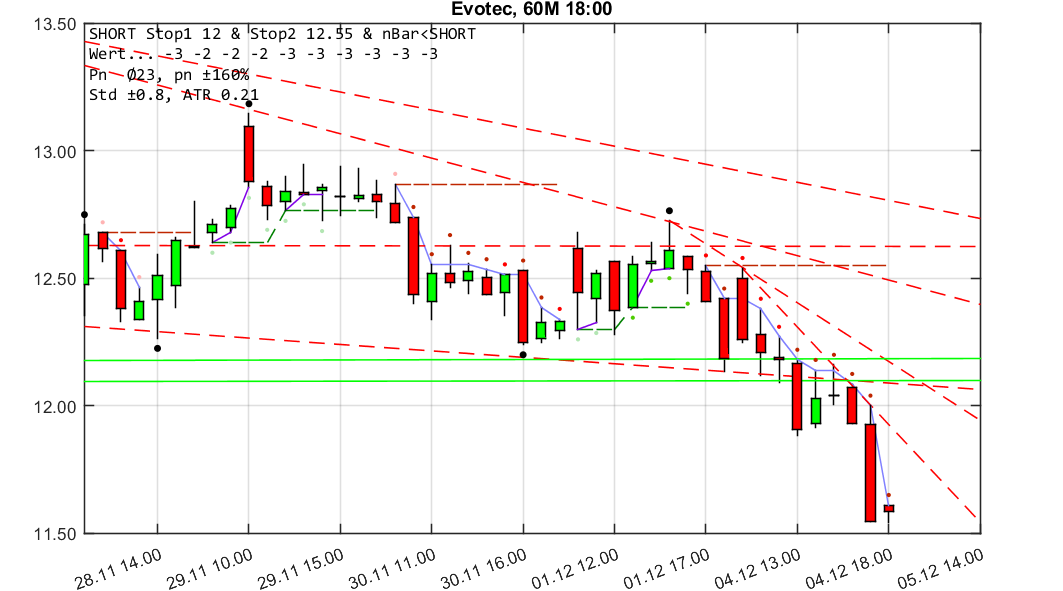 wenn man eine Long im Plan für eine Tag (Zeitebene 60M .. 15M) und glaubt Variante a) Fishing 12 € meine Maschine zeigt eine PROJIZIERT – berechnet mit wahrscheinliche zukünftige Kurse - Ausdehnung für dwWelle bis gering unten 12 => ~ 11,9.. 11,8 im Zeitebene 15M