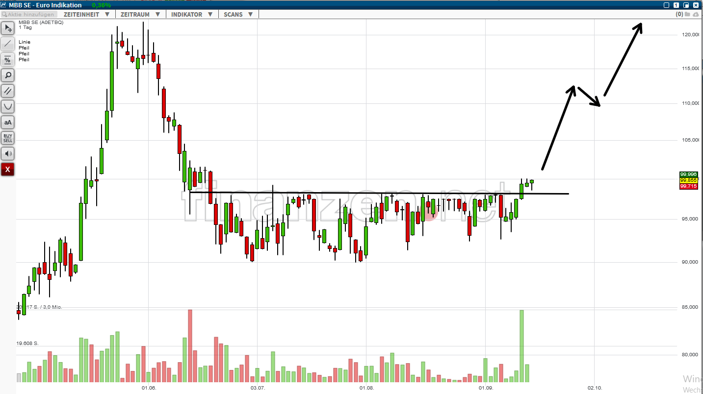 Michael Schröder, Redakteur beim Anlegermagazin DER AKTIONÄR, hat sich zuletzt bereits positiv zu MBB geäußert. "Der Deckel ist gerade dabei gesprengt zu werden", erneuert Schröder seine optimistische