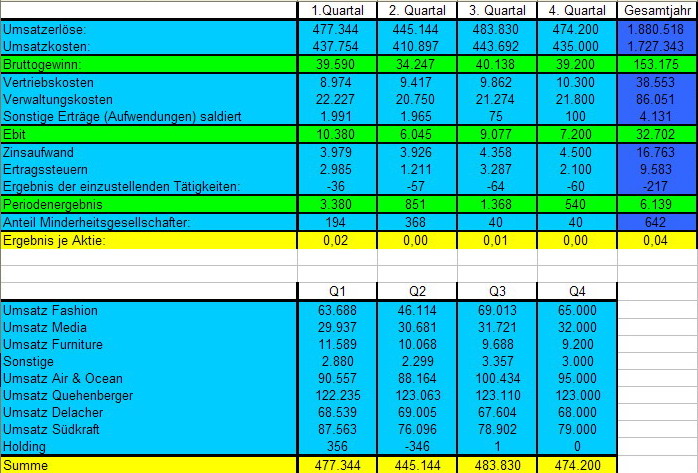 Besonders brisant ist dabei übrigens auch die Aussage das Thiel möglicherweise den Goodwill von 12Mio € auf den Bereich Furniture abschreiben muss. Eine Entscheidung darüber wird wohl im 4. Quartal gefällt. Sollte dies eintreffen wird es dieses Jahr mal wieder nix mit schwarzen Zahlen.