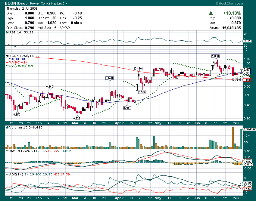Wilmington, Mass.-based Beacon Power (Nasdaq: BCON) designs, develops and is taking steps to commercialize advanced products and services to support stable, reliable and efficient electricity grid operation.
