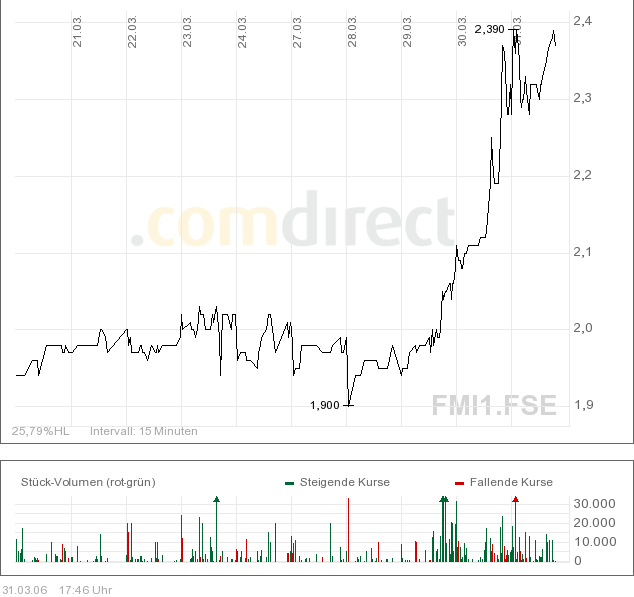 Die Aktie von Fortune Management notiert aktuell mit einem Plus von 0,63 Prozent bei 3,20 Euro. (4.7.2006/ac/n/a)