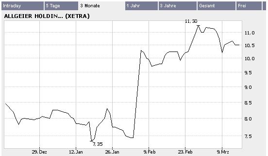 Die börsennotierte Allgeier-Gruppe, ein Konglomerat verschiedener Töchter im IT-Dienstleistungssektor, Personalvermittlung und ERP-, DMS- sowie Security-Software, ist in der Vergangenheit bereits stark durch Zukäufe gewachsen und will weiterhin Zukaufen. Man sei derzeit in Vorverhandlungen mit einem IT-Service-Unternehmen. Der mögliche Übernahmekandidat habe 2005 rund 14,5 Millionen Euro umgesetzt und dabei ein Ebit von voraussichtlich 2 Millionen Euro erzielt. In rund fünf Wochen soll der Kauf perfekt gemacht werden, falls Verhandlungen zu einem positiven Ergebnis kommen.