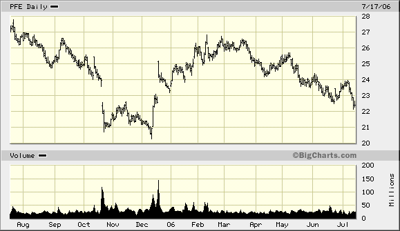 Bei Performaxx-Analysen (P. 14) bin ich doppelt vorsichtig. Performaxx hatte z. B. letzten Dezember Pfizer bei 20,30 USD als Short empfohlen - der dümmste Tipp weit und breit: Schon im Februar stand Pfizer 30 % höher bei 26 Dollar! (Details und die "Analyse" selbst finden sich in meinem Pfizer-Thread, der PFE Chart findet sich unten).