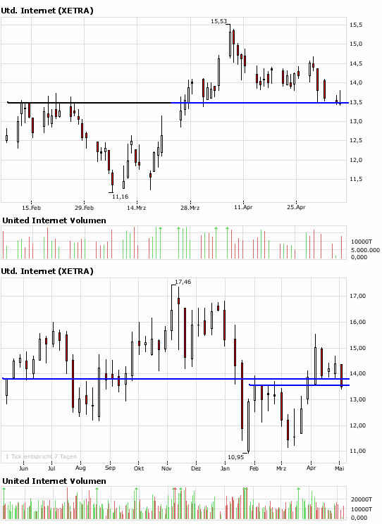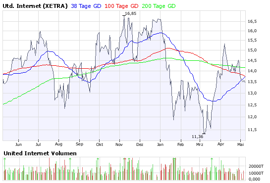 Montabaur (BoerseGo.de) - Die United Internet AG (News/Aktienkurs) ist mit einem zweistelligen Wachstum in das neue Jahr gestartet. Der konsolidierte Umsatz sei im Vergleich zum Vorjahr um 19,3 Prozent auf 402,0 Millionen Euro (Vorjahr: 336,9 Millionen Euro) gestiegen, teilte das Unternehmen am Mittwoch mit. Das operative Ergebnis (EBITDA) verbesserte sich um 31,2 Prozent auf 83,2 Millionen Euro (Vorjahr: 63,4 Millionen Euro). Der Konzerngewinn erhöhte sich um 46,0 Prozent auf 45,1 Millionen Euro (Vorjahr: 30,9 Millionen Euro). Entsprechend stieg das Ergebnis je Aktie von 0,13 Euro auf 0,19 Euro.