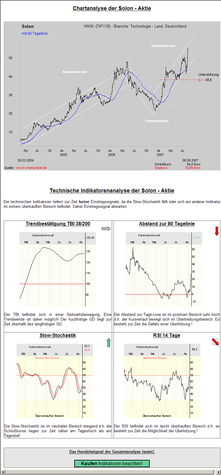 Solon: Kaufen - Intakter Aufwärtstrend !