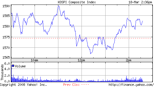 | ^KS11 | Seoul Composite | 1,581.33 | 6.89 (0.44%) | Components, Chart, More |