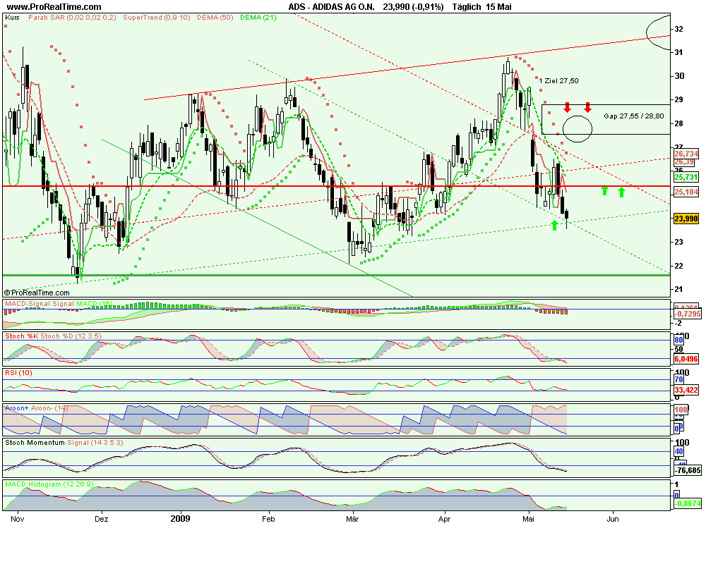 Das Konzernergebnis im ersten Quartal habe die Erwartungen der Investoren verfehlt. Damit materialisiere sich beim Sportartikelriesen das von den Analysten erwartet schwierige Umbruchsjahr. Allerdings biete die aktuelle Wirtschaftssituation die Möglichkeit, Problemfelder (u.a. Reebok) und Organisation kräftig umzukrempeln. Selbst das an sich solide adidas-Segment werde zwar im heurigen Geschäftsjahr einige Schrammen abbekommen. Allerdings würden die Analysten glauben, dass ein globaler Wirtschaftsaufschwung, sportliche Großereignisse und eine schlankere Organisationsstruktur auf mittlere und längere Sicht wieder ein kräftiges Aufwärtspotenzial bedeuten würden.