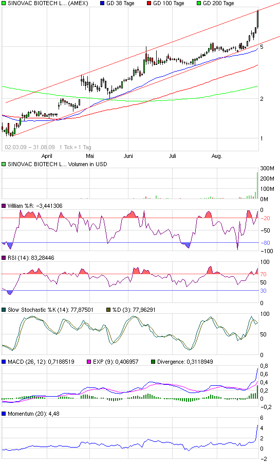 Grund für den heutigen Kurssprung ist die Meldung, dass Experten der chinesischen Gesundheitsbehörden grünes Licht für den von Sinovac entwickelten Impfstoff zur Vorbeugung der Schweinegrippe gegeben haben.